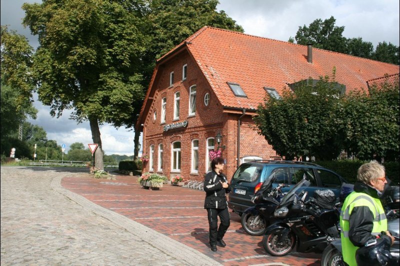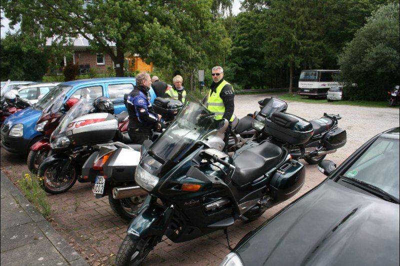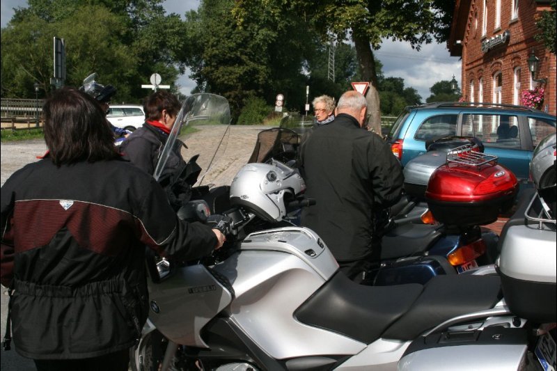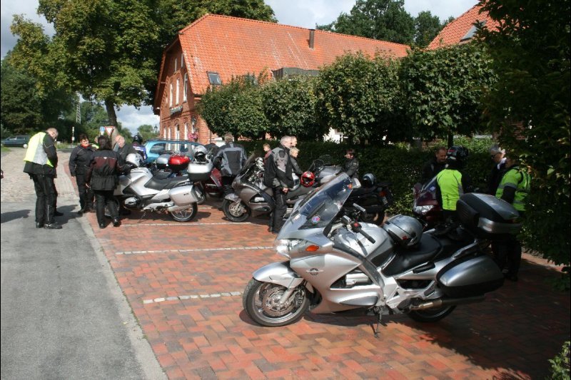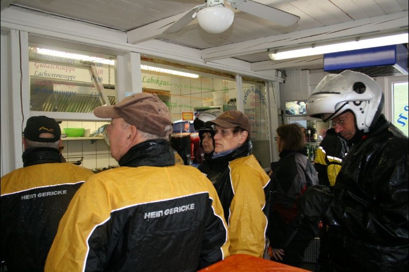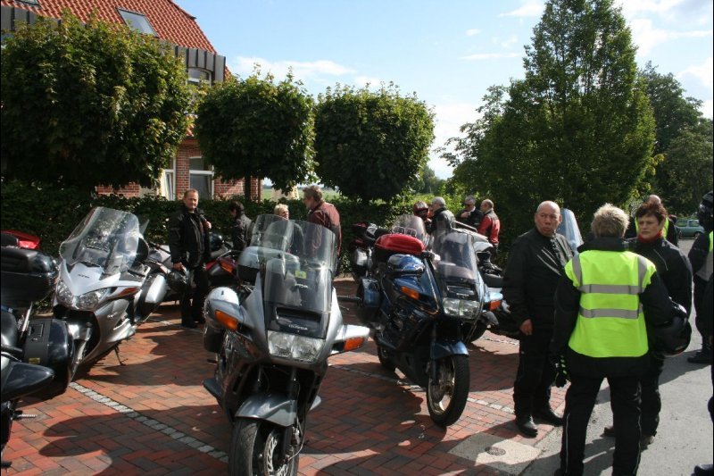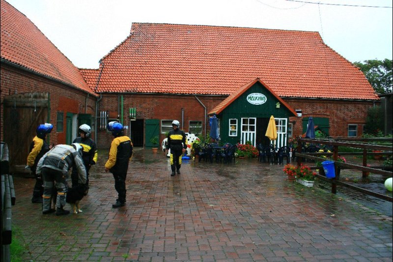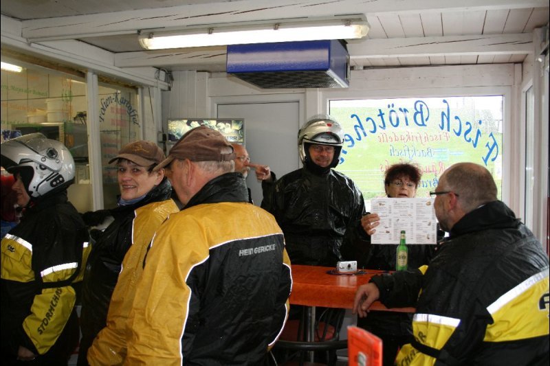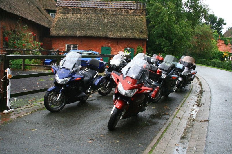 Am Freitag regete es in Strömen und wir starteten trotzdem unsere Tour. Zuerst ging es nach etwa einer Stunde Fahrt in ein Melkhus wo wir uns bei frischen Milchprodukten stärken konnten. Von uns aus dem Süden wusste natürlich keiner so recht was ein Melkhus ist. Wortwörtlich ist es wohl am ehesten ein „Melkhaus“ in dem im Direktvertrieb frische Milchprodukte vertrieben werden. Wieder was dazu gelernt. Danach ging es westwärts am Deich entlang, bis wir dann doch ein Einsehen hatten und dann die Tour wegen des immer stärker werdenden Regens verkürzten. Was außerordentlich schade war – denn die Gegend hat sehr wohl ihre Reize – auch wenn diese nicht aus hübsch anzuschauenden Kurven bestehen. So ging es dann nach einer Stärkung am Fischimbiss Richtung Hotel zurück.Am Samstag stand eine Ausfahrt am Weserufer entlang auf eine Weserinsel auf dem Programm. Das Wetter war wiedererwartend gut – soll heissen, es regnete nicht und die Sonne liess sich auch mal zwischendurch blicken. Wegen des für den Abend geplanten Besuches der Sail in Bremerhaven war die Ausfahrt etwas kürzer, da man ja schliesslich auch noch Mittagessen wollte im Hotel. Aber schöne Ausfahrten müssen ja auch nicht immer lang sein. Zwischendurch wollte es immer mal wieder Regnen und man sollte auch stets wissen wo man seinen Regenkombi verstaut hatte. Denn Überraschungsmomente gab es immer.