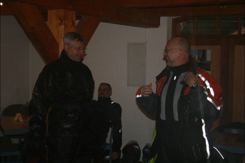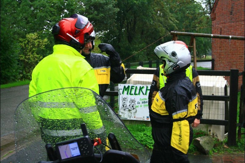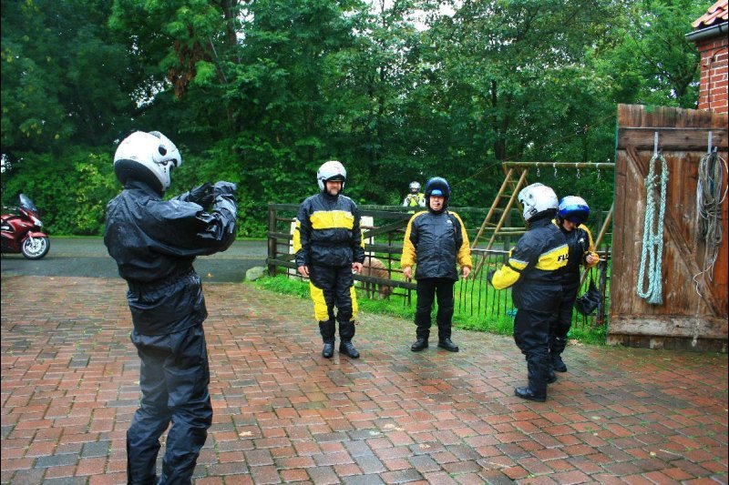 die Bedingungen zum Testen der Regenkombis waren bestens. Obwohl wir die Abfahrt um 1 Tag nach hinten verschoben hatten um den Regen aus dem Weg zu gehen kam es so wie es kommen musste. Am 2. Tag der Anreise vom Sauerland bis in den Grasberger Hof war der Regen unser ständiger Begleiter.