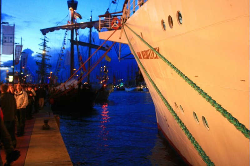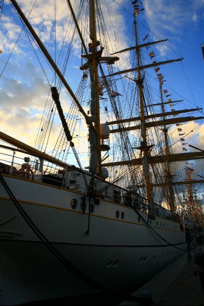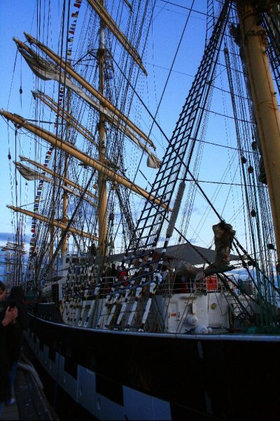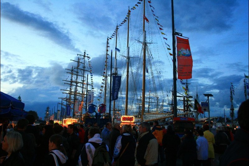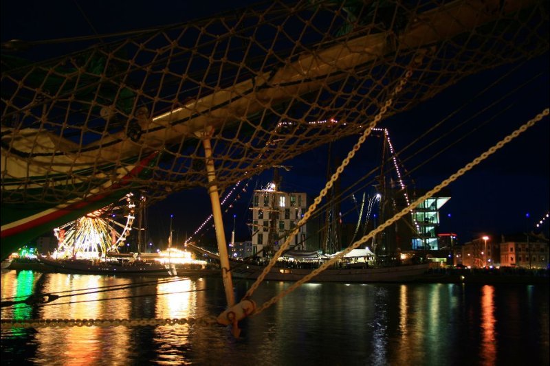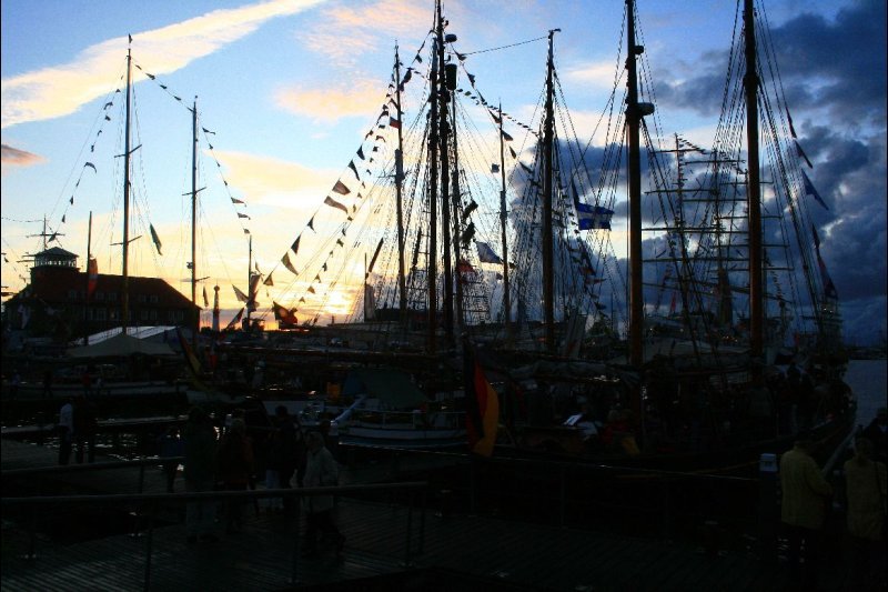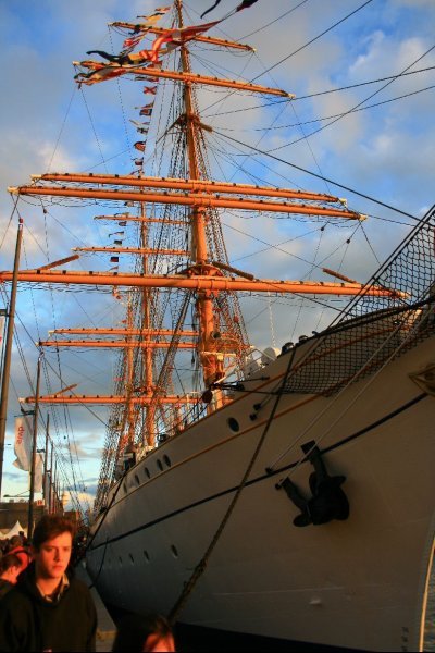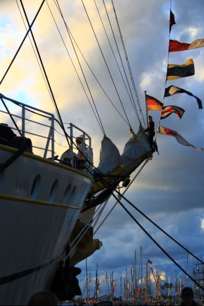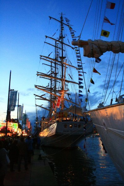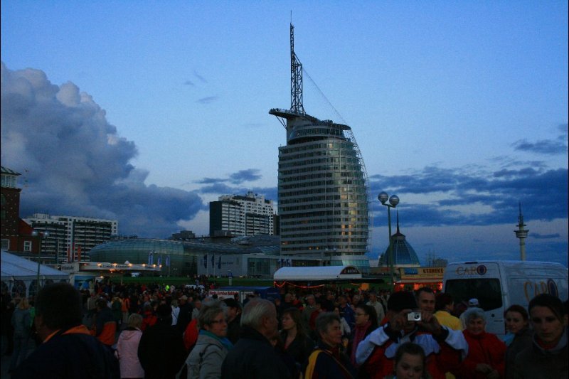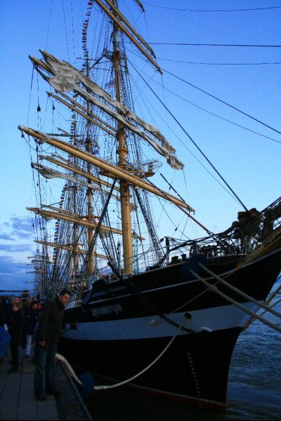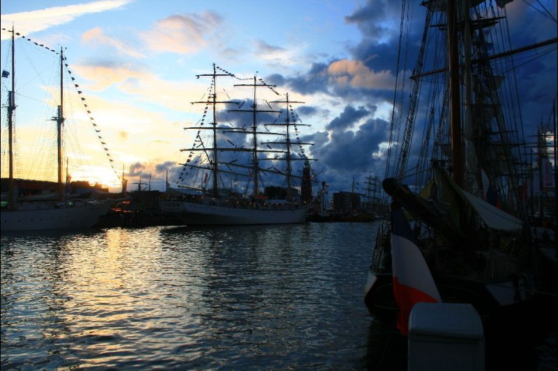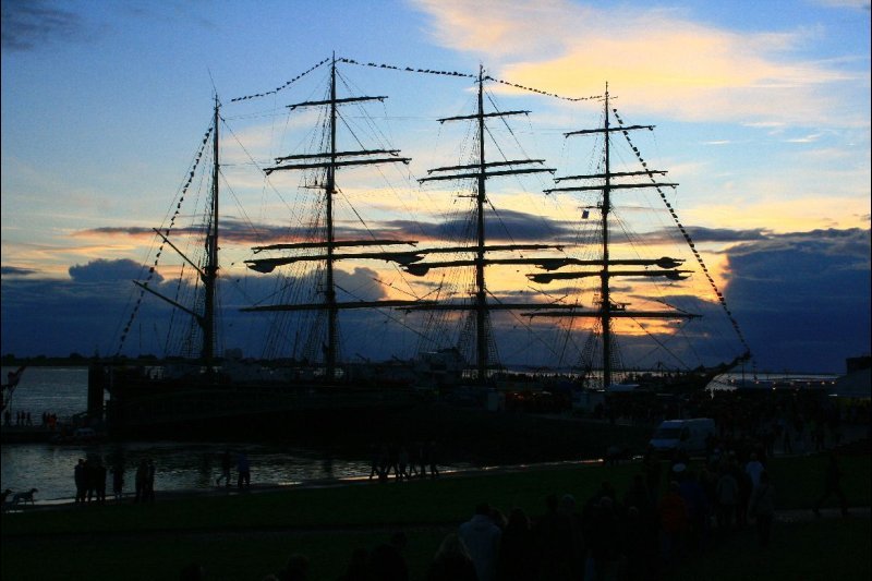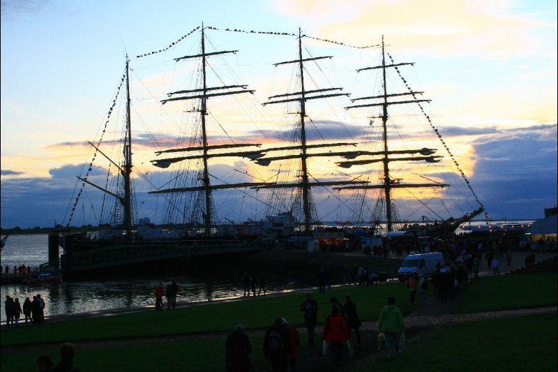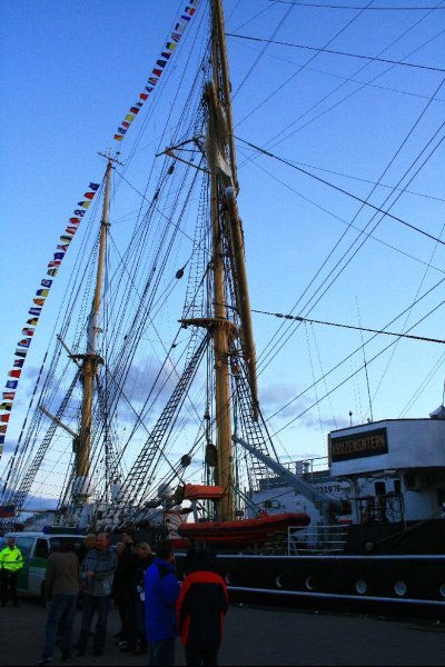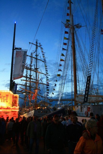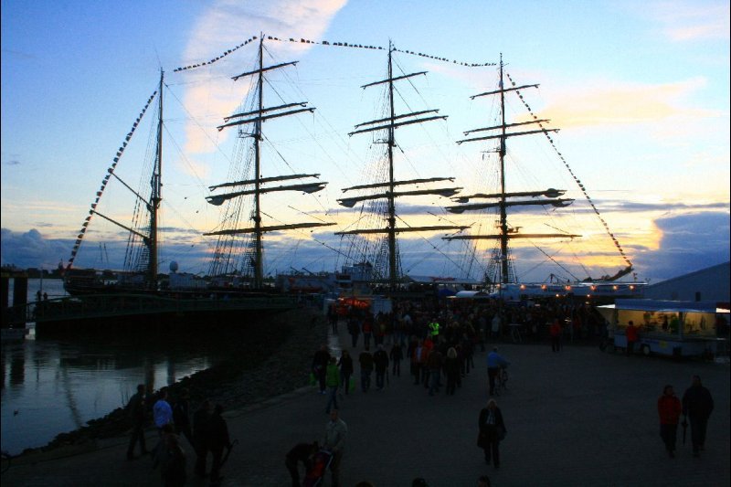 Abends ging es dann auf die Sail nach Bremerhaven. Dort konnten wir als Südländer das bestaunen was es bei uns nun gar nicht gibt. – Große Segelboote. Der Spaziergang in Bremerhaven war äußerst kurzweilig und bot jede Menge zu sehen. Segelschulschiffe aus allen möglichen Ländern (darunter auch die Gorch Fock) konnten bestaunt und auch besichtigt werden. Am imposantesten vielleicht war die „Krusenstern“ ein 4 Master, der am Deich der Wesermündung lag.