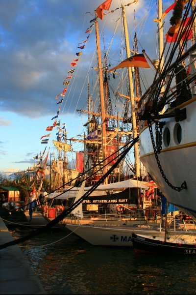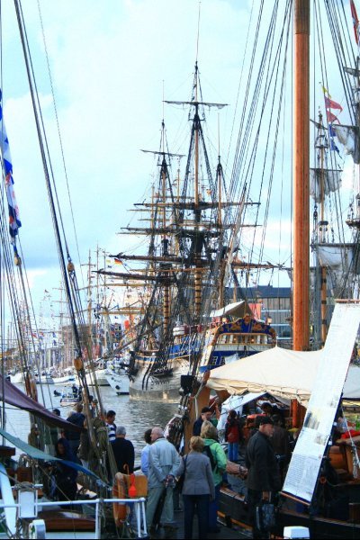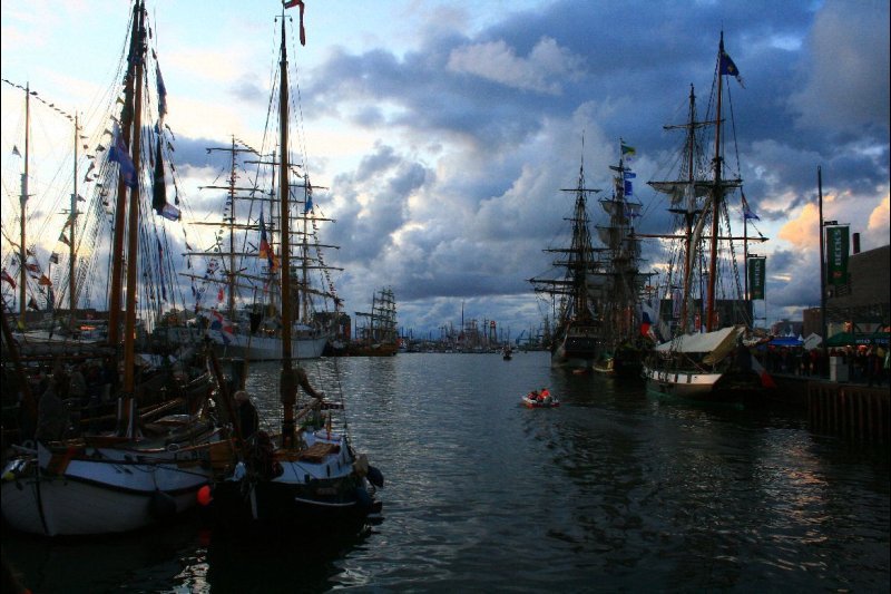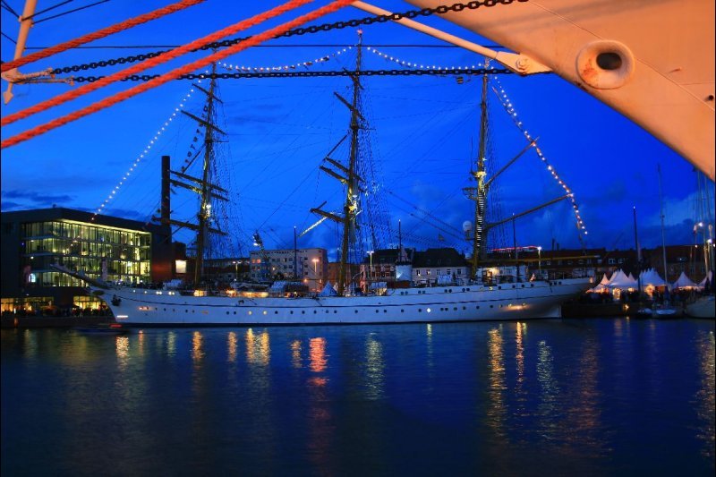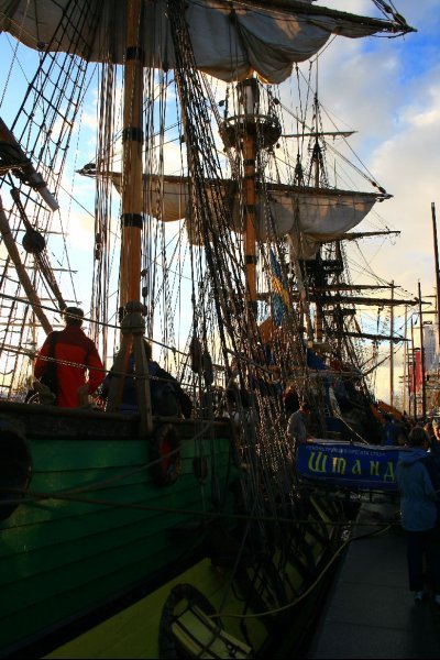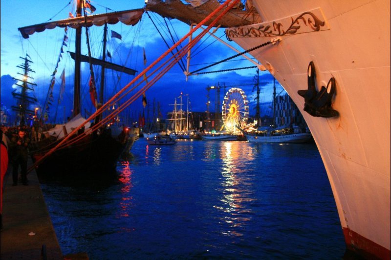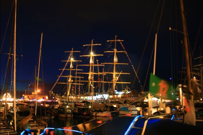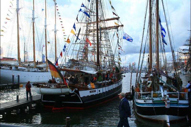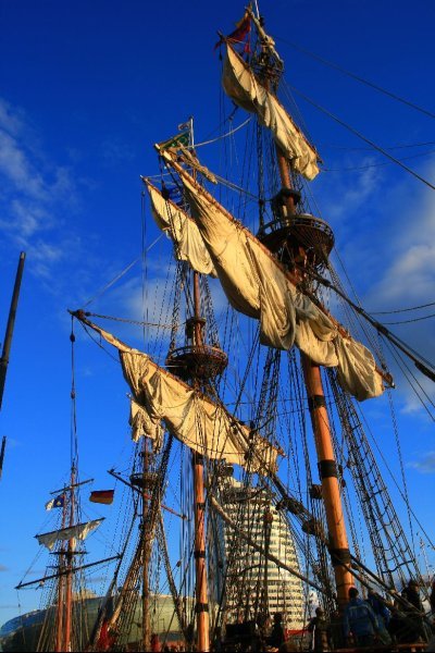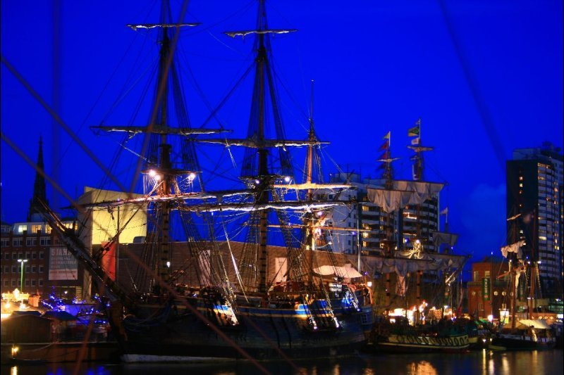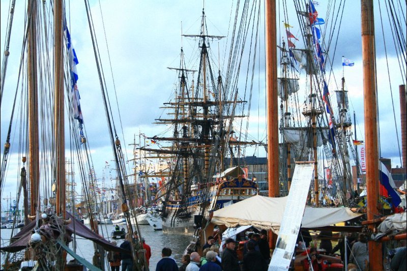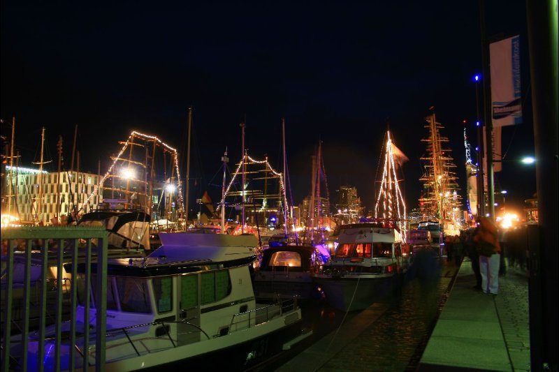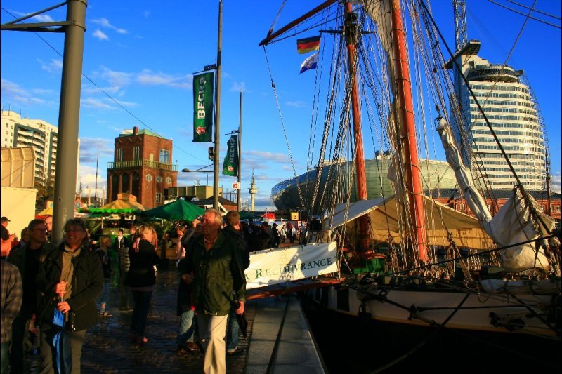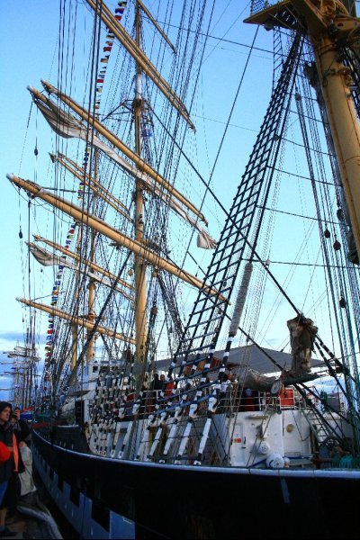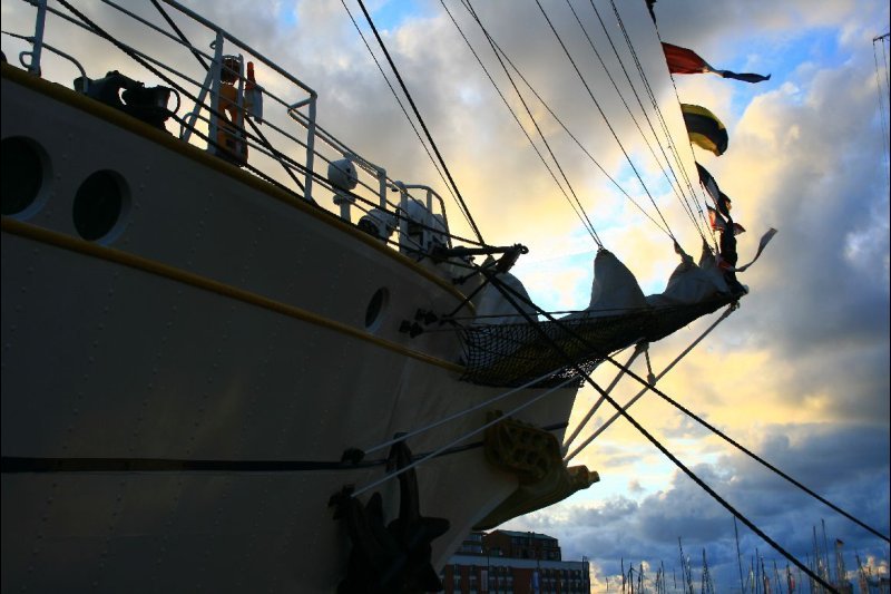 Abends ging es dann auf die Sail nach Bremerhaven. Dort konnten wir als Südländer das bestaunen was es bei uns nun gar nicht gibt. – Große Segelboote. Der Spaziergang in Bremerhaven war äußerst kurzweilig und bot jede Menge zu sehen. Segelschulschiffe aus allen möglichen Ländern (darunter auch die Gorch Fock) konnten bestaunt und auch besichtigt werden. Am imposantesten vielleicht war die „Krusenstern“ ein 4 Master, der am Deich der Wesermündung lag.