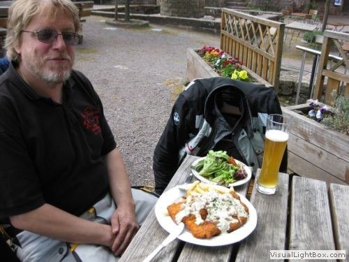 Nach einem Mittagessen auf dem Burghof ging es dann weiter in einer Schleife durch den Wasgau Richtung Hofstetten, wo wir bei einem Kaffee und reichlich Sonnenschein die Tour beendeten. Es hatte wirklich alles gepasst – sogar der Stromausfall, der zum Zeitpunkt des Eintreffens in Hofstätten große Teile der Küche lahm legte, war eine Viertelstunde nach unserem Eintreffen behoben.