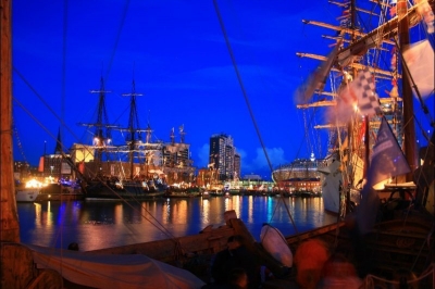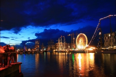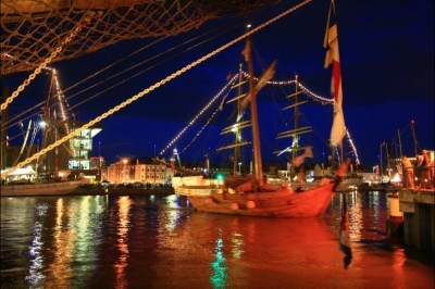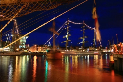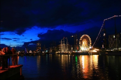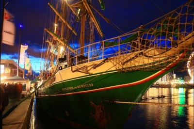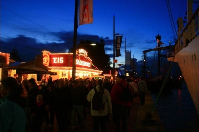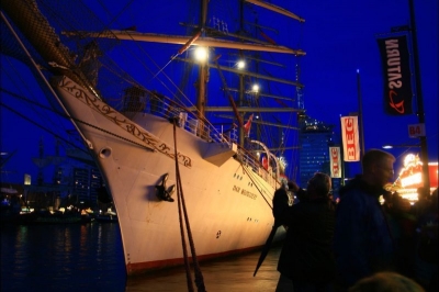 Abends ging es dann auf die Sail nach Bremerhaven. Dort konnten wir als Südländer das bestaunen was es bei uns nun gar nicht gibt. – Große Segelboote. Der Spaziergang in Bremerhaven war äußerst kurzweilig und bot jede Menge zu sehen. Segelschulschiffe aus allen möglichen Ländern (darunter auch die Gorch Fock) konnten bestaunt und auch besichtigt werden. Am imposantesten vielleicht war die „Krusenstern“ ein 4 Master, der am Deich der Wesermündung lag.