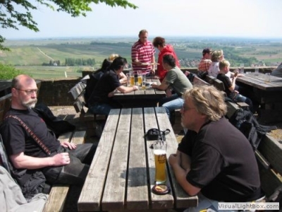 Nach einem Mittagessen auf dem Burghof ging es dann weiter in einer Schleife durch den Wasgau Richtung Hofstetten, wo wir bei einem Kaffee und reichlich Sonnenschein die Tour beendeten. Es hatte wirklich alles gepasst – sogar der Stromausfall, der zum Zeitpunkt des Eintreffens in Hofstätten große Teile der Küche lahm legte, war eine Viertelstunde nach unserem Eintreffen behoben.